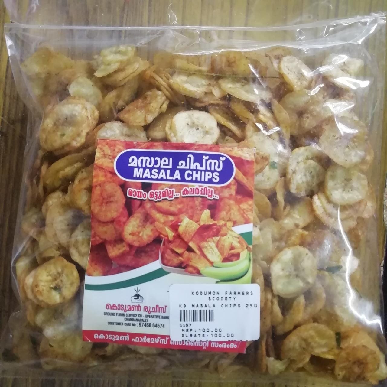 Robusta a plantain variety procured from farmers is used for making masala chips with good quality coconut oil adopting the technology from Banana research station, Kannara.